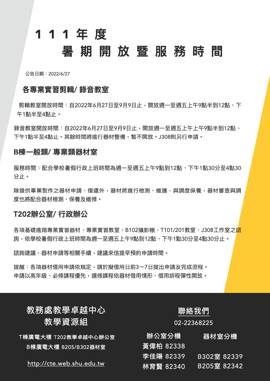 111年度暑期開放暨服務時間