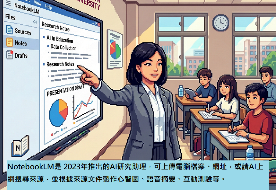 教學發展中心與您分享【教學新知】(轉載)NotebookLM 做簡報怎麼用?中文錯誤能修?8應用教學。文章詳細介紹如何運用 NotebookLM 進行資料摘要、自動生成建議,以及修正中文語意錯誤等實作技巧。透過引導學生善用這類工具進行深度學習、啟發學生的批判性思考,而非單純的資料整理;善用科技的力量,讓教學與學習都變得更具效率。