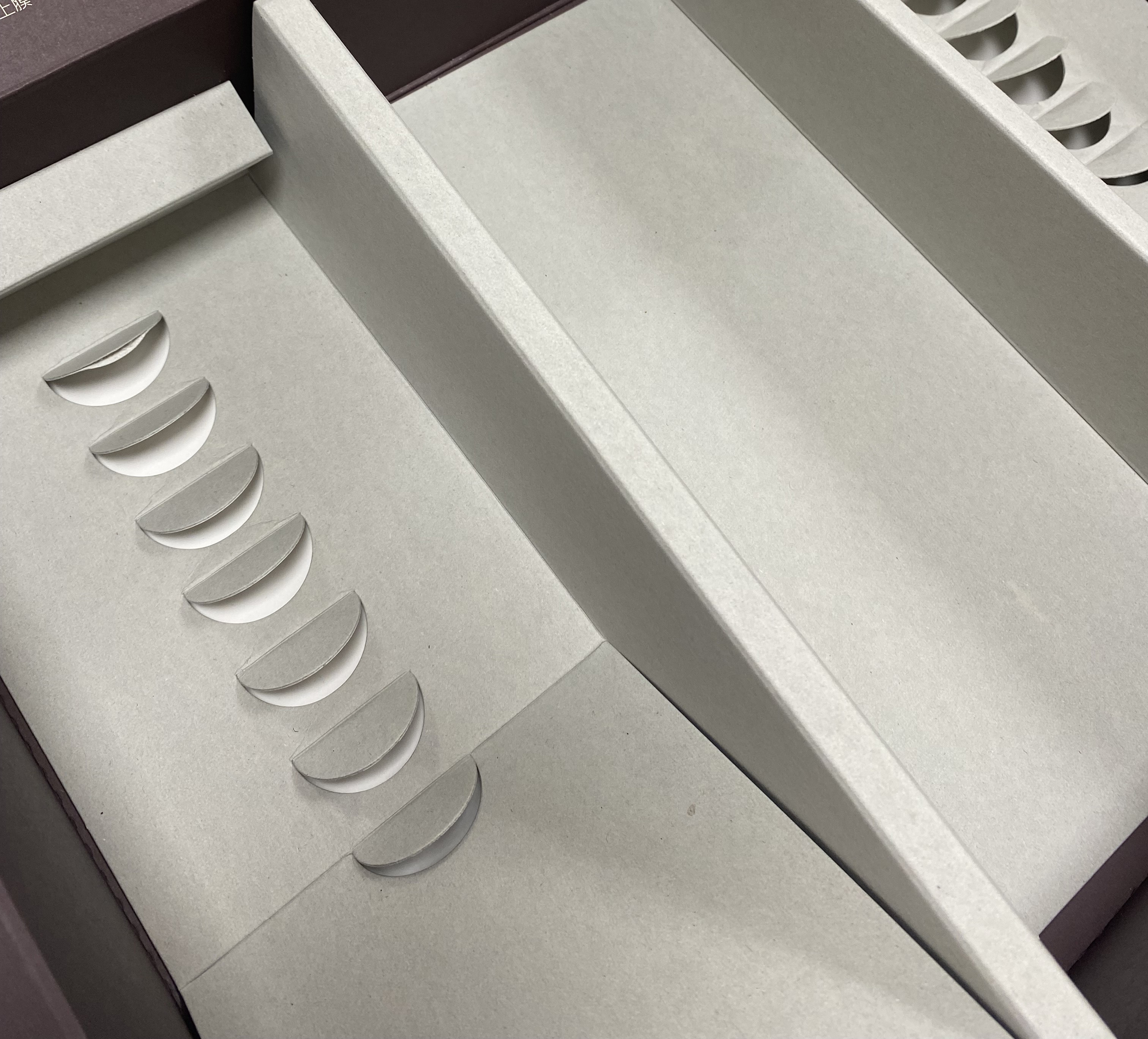 學生練習各式盒型測試 產學合作案學生依業主要求設計包裝內部結構予以配置各類品項