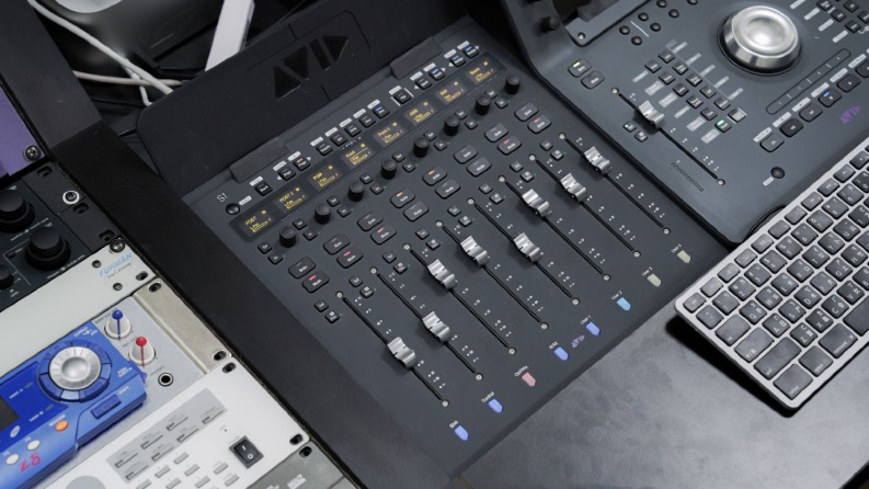 3. 專業⾺達推桿(Motorized Faders):⾼靈敏度並⽀援⾃動化回饋,適合精準混⾳。