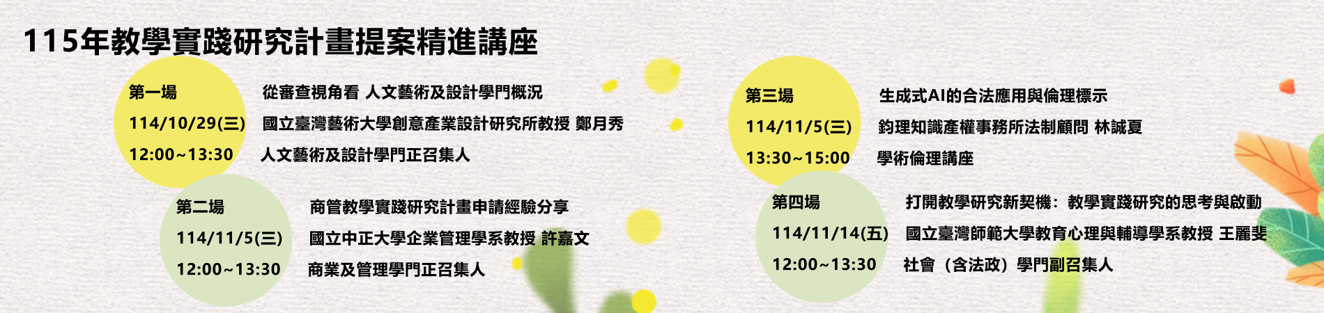 【轉知】靜宜大學辦理「115年度教學實踐研究計畫撰寫諮詢服務」(報名至11/30前或額滿截止)